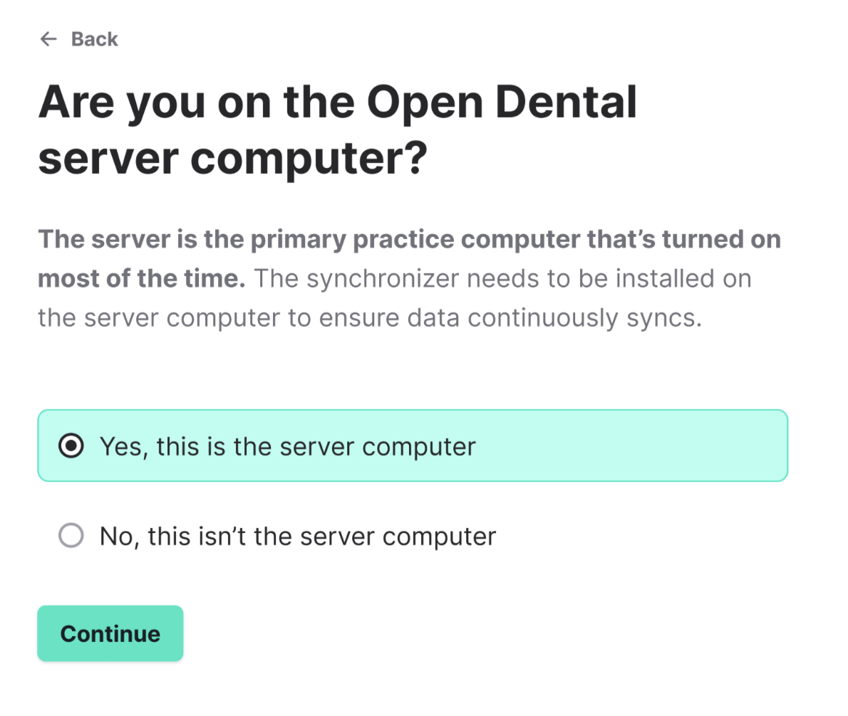 Then, they'll continue the setup differently based on whether they have a server-based EHR, a cloud-based EHR, or an EHR without self-serve setup.