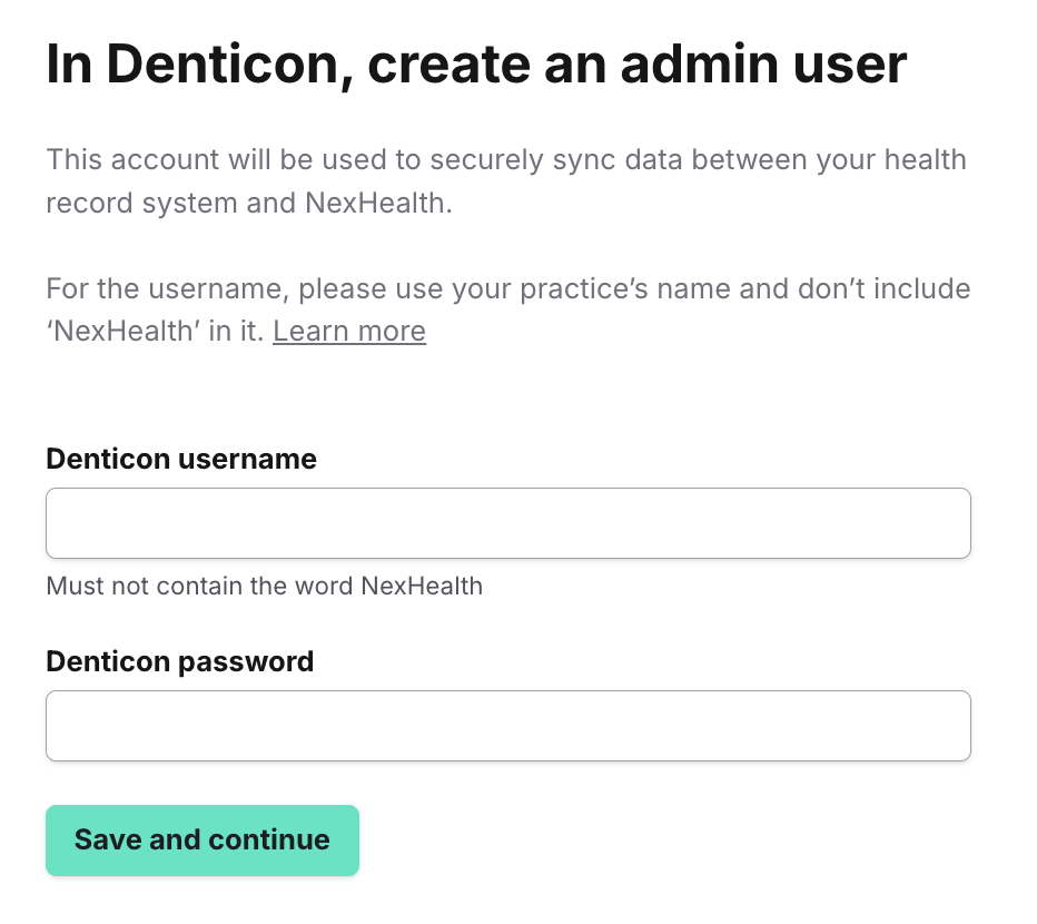 2. The practice will enter admin user credentials in the practice-facing setup UI.