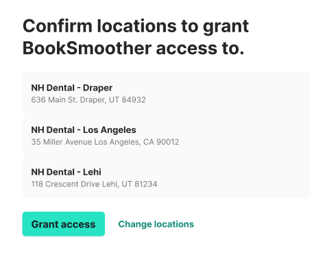 2. Multi-location Practices will select which locations to grant access to, then click Grant access.